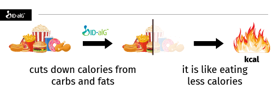 - ID-alG™ blochează până la 77% din carbohidrați și 63% din grăsimi enzimele de digestie ³