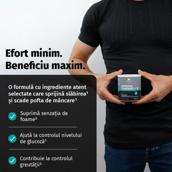 Appetite control PRO contribuie la metabolismul grăsimilor² și controlul greutății¹, susținându-ți astfel eforturile zilnice.