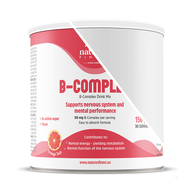 Complexul nostru B conține aromă naturală de portocală (5 %), care creează o băutură citrică răcoritoare și face aportul zilnic de vitamine B plăcut.