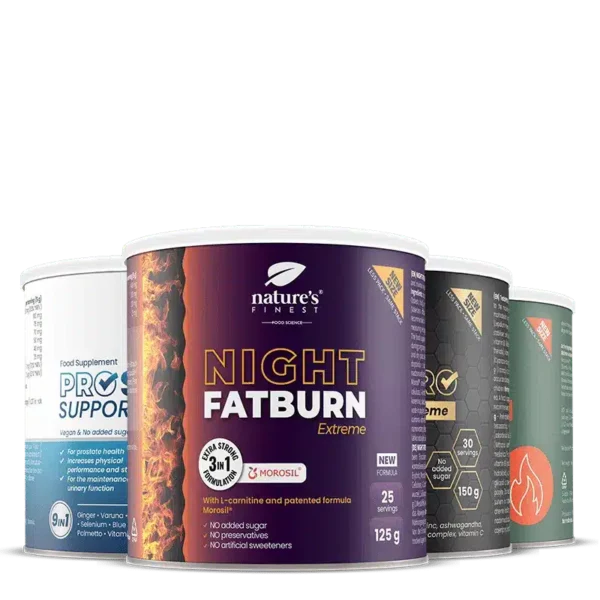 Pachetul ultimativ pentru transformare pentru bărbați: crește eliminarea grăsimilor⁵, ajută la menținerea unei rezistențe optime⁷ și susține funcționarea normală a prostatei⁸
