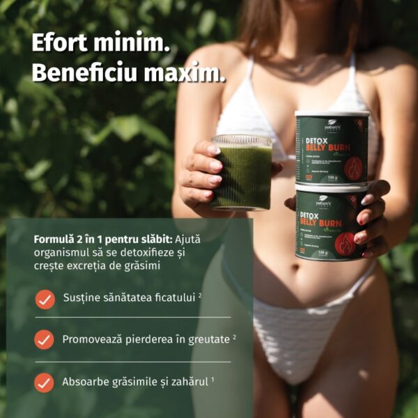Detox Belly Burn: Amestecați 1 măsură (5 g) în un pahar cu apă (200 ml) și beți.