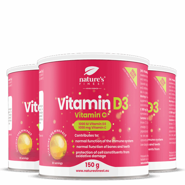 Cu această pulbere de vitamina D3 și vitamina C, asigurăm cea mai bună absorbție, care începe imediat ce este consumată. Rolul principal al vitaminei D este de a menține homeostazia și o concentrație constantă de calciu și fosfați în plasmă, iar vitamina C acționează ca un puternic antioxidant.